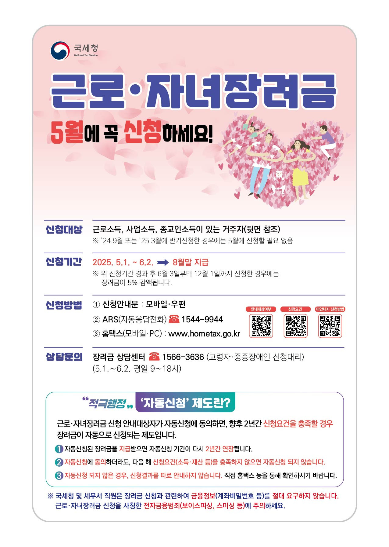 👉 특히 근로장려금과 함께 신청하면 더 큰 혜택을 누릴 수 있으니, 2025년 5월 정기 신청 기간을 놓치지 마세요.