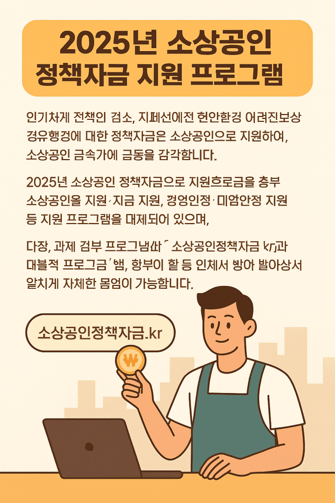 2025 소상공인 정책자금은 단순히 돈을 빌려주는 제도가 아니라, 자영업자의 생존과 성장을 지원하는 정부의 핵심 금융정책입니다.